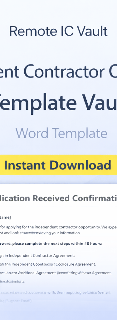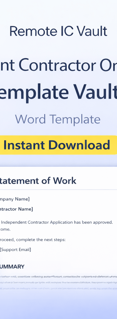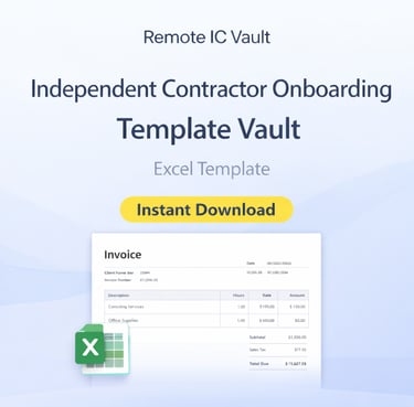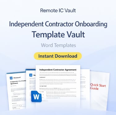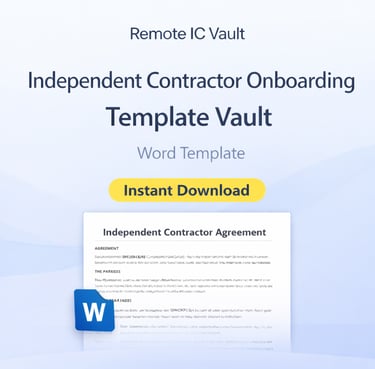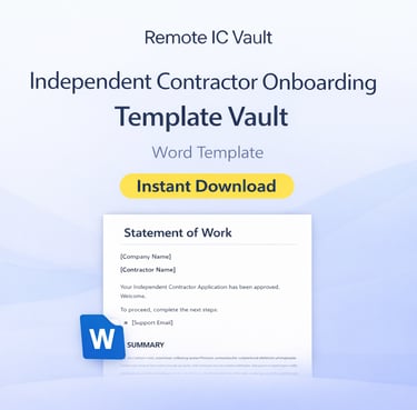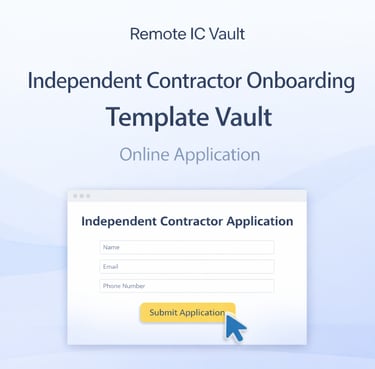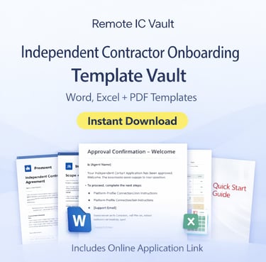 Agreements, Statements of Work (SOWs), financial and tax documentation templates, onboarding email templates, plus bonus Cognito Forms online application access. Designed to support independent contractor workflows commonly used by call center and remote support service companies.