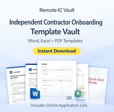 Agreements, Statements of Work (SOWs), financial and tax documentation templates, plus bonus Cognito Forms online application access. Designed to support independent contractor workflows commonly used by call center and remote support service companies.